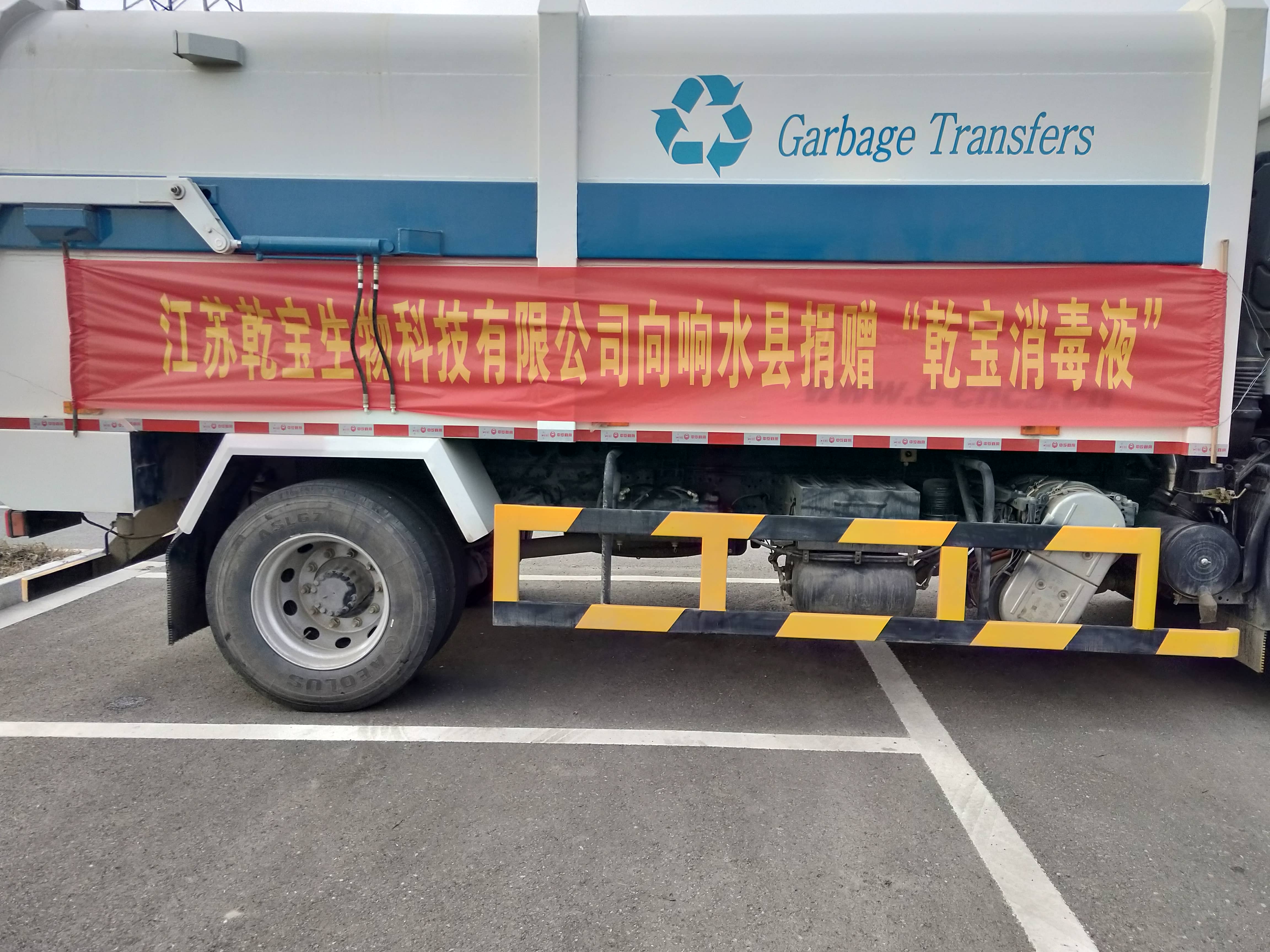 針對當前“新型冠狀病毒”疫情,乾寶生物科技從年初一到目前為止已經向武漢、阜寧等地捐贈消毒液原液十多噸,今天又向鹽城市捐贈消毒液原液三噸。