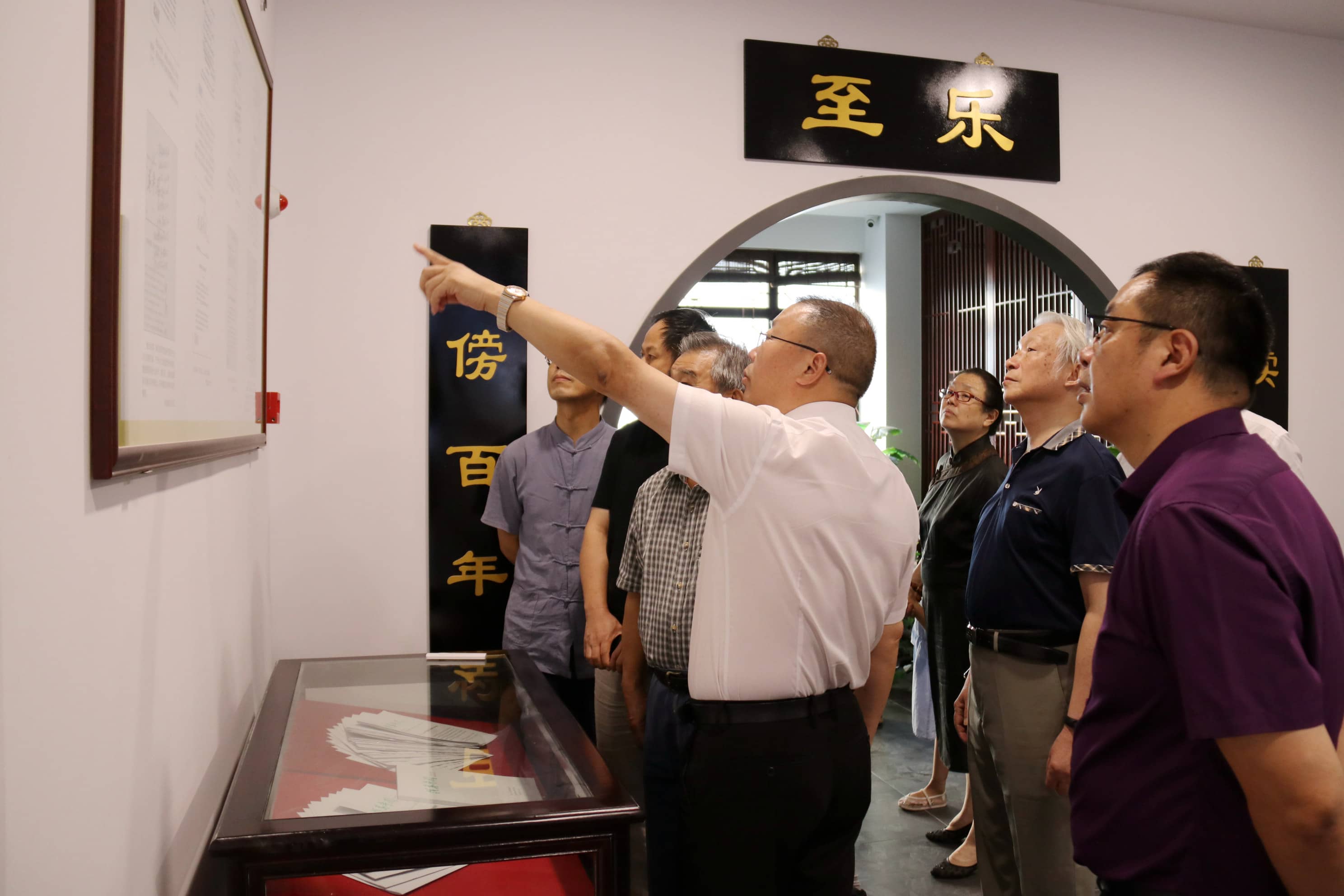 2020年9月6日,蘇州市委原副書記、市政協(xié)原主席馮瑞渡,中國書協(xié)培訓中心教授、省文史館員、蘇州市書法家協(xié)會顧問、蘇州市書協(xié)原副主席兼學術委員會主任葛鴻楨,蘇州市人大常委會科教文工作委員會原主任、市工商聯(lián)原黨組書記王根偉,中國書法家協(xié)會會員、蘇州市書法家協(xié)會學術委員、蘇州市青年書法家協(xié)會理事兼學術委員會秘書長、吳中區(qū)書法家協(xié)會副主席、吳中區(qū)政協(xié)書畫協(xié)會副主席盧月龍一行來訪太湖書院,江蘇乾寶集團董事長、太湖書院理事長王躍程,江蘇乾寶集團執(zhí)行總裁、太湖書院秘書長王翼寧,太湖書院副院長許建華等熱情接待。