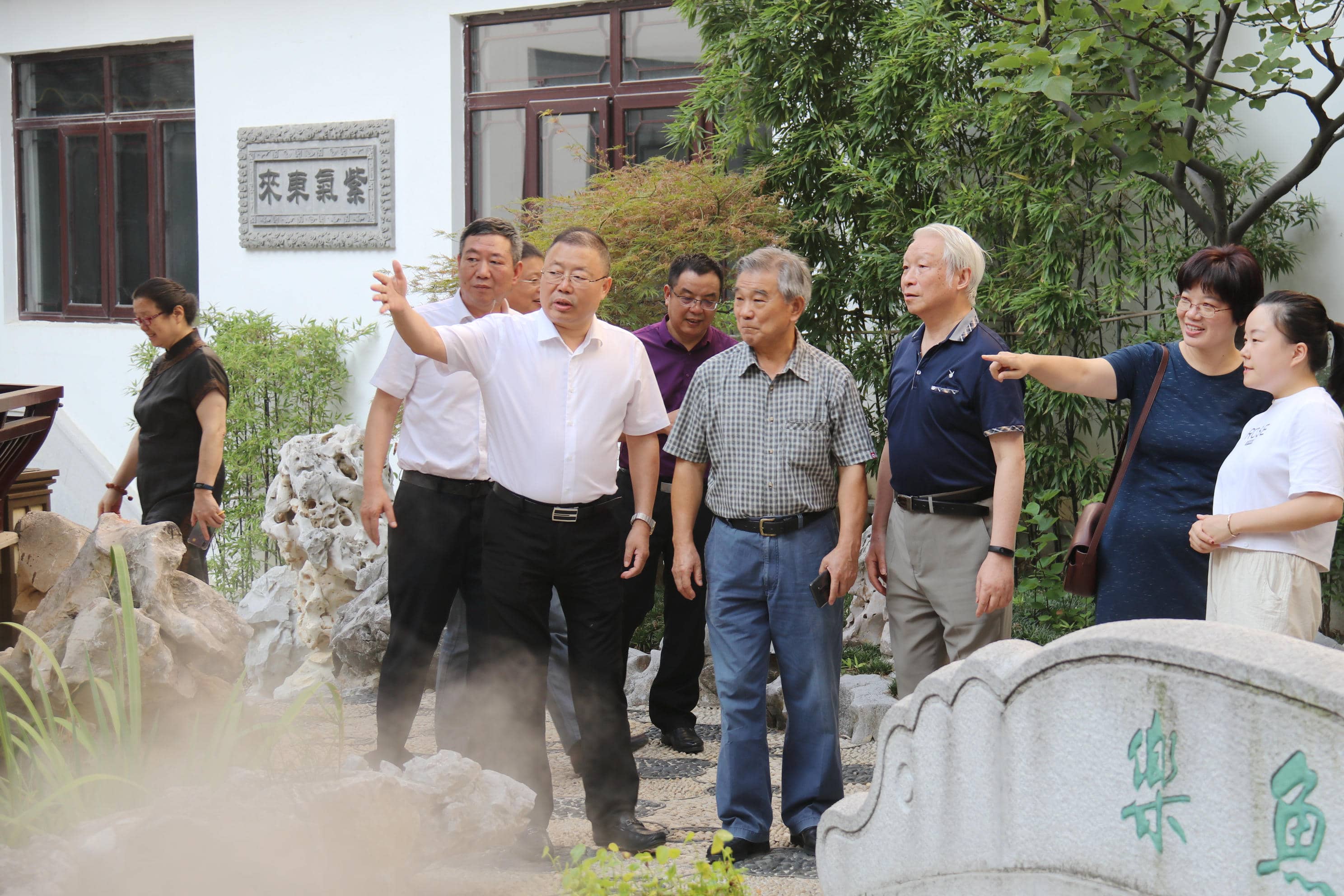 書院領導和工作人員陪同馮瑞渡一行參觀了太湖書院文博館、名家藏書館、非遺古建館、允中藝術館和被譽為“天堂蘇州·百園之城”的太湖書院易園。