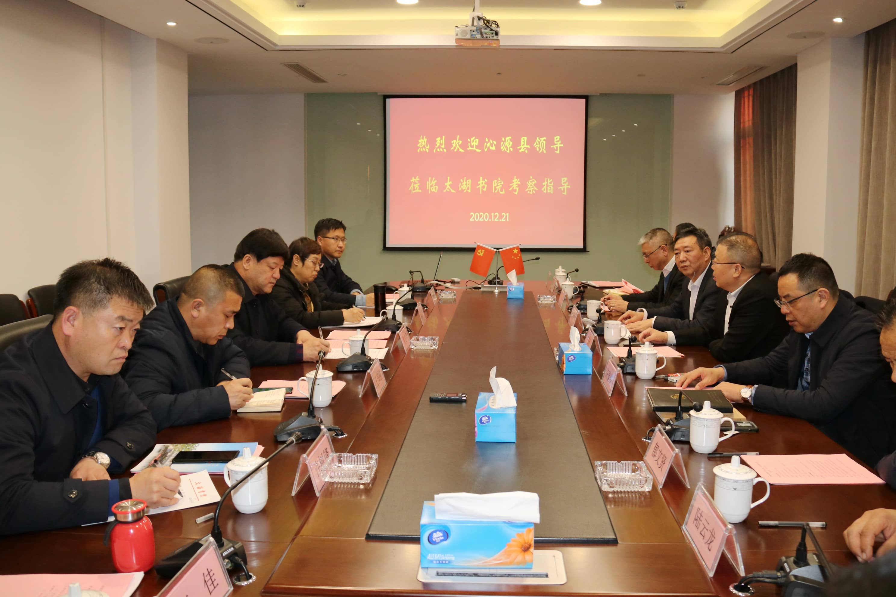12月21日,山西省沁源縣縣委常委、宣傳部長黃貴河,副縣長李建萍,縣委宣傳部副部長王偉剛,縣文化和旅游局局長、縣融媒體中心主任史曉亮,沁河鎮黨委書記許樹鋒,縣文化和旅游局副局長李佳,縣圖書館館長閻金萍等人蒞臨太湖書院考察指導。江蘇乾寶科技發展集團有限公司董事長、太湖書院理事長王躍程,集團執行總裁、太湖書院秘書長王翼寧,集團常務副總裁、太湖書院副院長許建華,集團副總裁、天堂美景觀綠化工程有限公司總經理馬向農,集團副總裁孟憲考,太湖書院執行院長王建明,蘇州香山法原建筑設計有限公司院長盧,蘇州香山法原建筑設計有限公司設計總監吳昊,國家級非物質文化遺產“香山幫傳統建筑營造技藝”傳承人郁文賢、陸云龍等人陪同考察并參加了座談會。