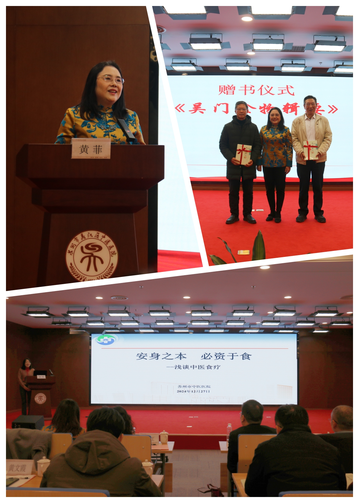 隨后,黃菲向吳門醫(yī)派分院的五個(gè)研究所、參展方江蘇乾寶集團(tuán)與藏書羊肉協(xié)會(huì)等贈(zèng)送了其主編的《吳門食物輯要》新著,并以“舌尖上的中醫(yī)”為題作了主旨報(bào)告。蘇州市中醫(yī)醫(yī)院營(yíng)養(yǎng)科與護(hù)理部做了藥食同源演示互動(dòng)。