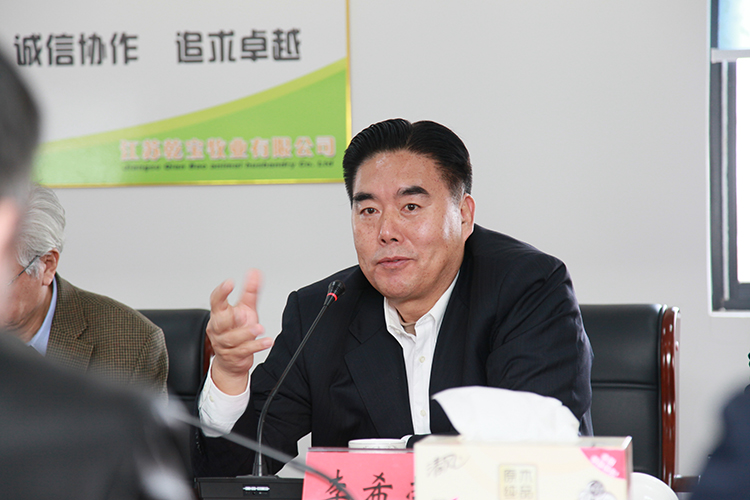 鹽城市市長戴源,秘書長徐龍波,人社局長王娟及科技、農業等部門負責人與行業領導、院士、專家學者就產學研合作進行了深入的交流,對乾寶牧業走科技、生態、循環發展定位表示堅決支持。