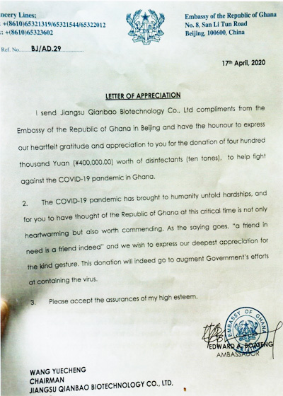 • 加納共和國感謝信2020.4.17