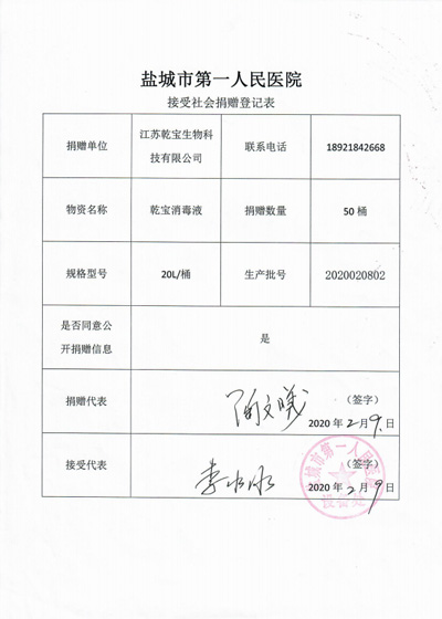 • 鹽城市第一人民醫院捐贈登記表2020.2.9
