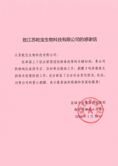 • 鹽城市政府感謝信