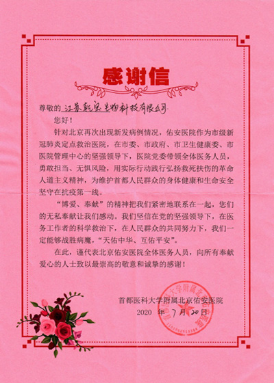 • 佑安醫院感謝信2020.7.20