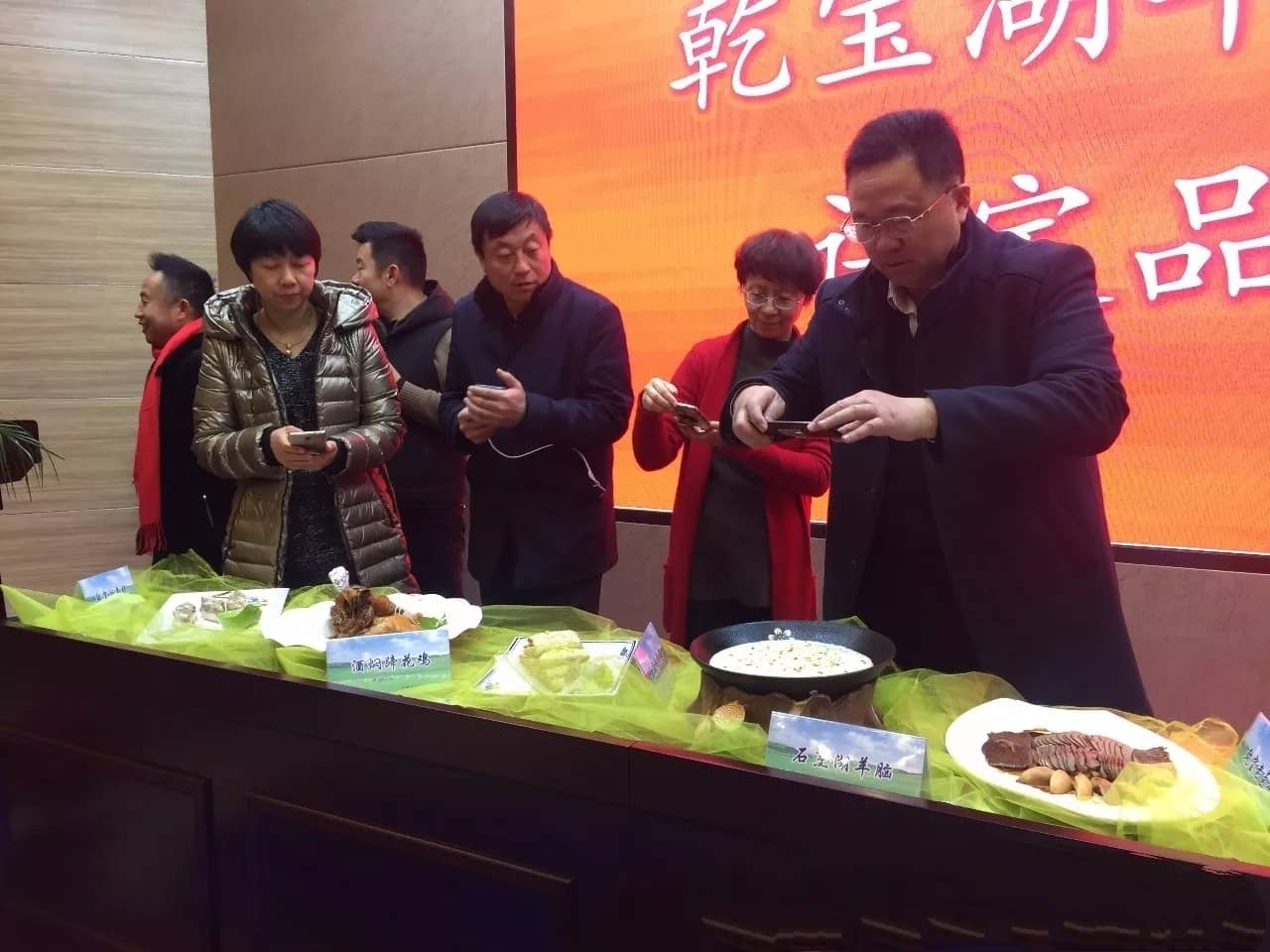在新菜品發布環節,烹飪協會方面專家與烹飪大師共同揭曉了乾寶湖羊糕、酒燜蹄花雞、金菊湖羊圈、石烹湖羊腦、乾寶老鹵拼、滋補羊腎寶、乾寶湖羊包、乾寶羊肉方、乾寶富貴圓,干鍋湖羊雜等十大菜品并發布評定結果。