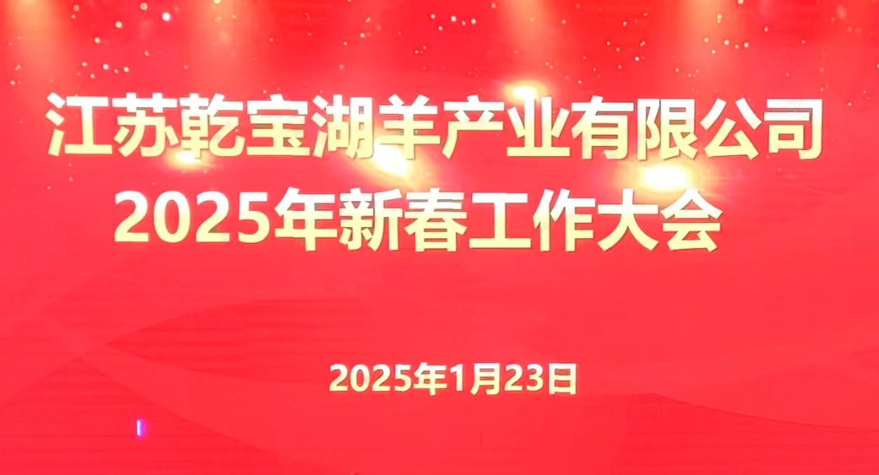 2025年1月23日下午,江蘇乾寶湖羊產業有限公司在報告廳隆重召開2025年新春工作大會,公司領導班子全體成員、全體員工參加了大會。 ◎會議現場會議由蔡實實副總裁主持,蔣柏林總裁作了《攻堅克難 奮發有為 扎實推動乾寶湖羊產業轉型升級》的工作報告,王躍程董事長在會上發表題為《接續奮斗新征程 攜手同心譜新篇》的重要講話。 ◎蔣柏林總裁作工作報告蔣總在工作報告中,分別從湖羊種業的育繁...