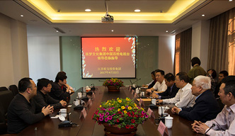 ??????? 2017年4月15日,集團公司董事長王躍程先生率公司領導層及太湖書院丘亮輝山長、陳建新副院長等,在集團公司新建辦公大樓會見了中國農開集團、族夢文化集團、中國百姓電視臺屠春云臺長一行四人。雙方就共同合作謀劃在更大的領域發展,取得一致共識,并簽署了戰略合作伙伴協議書。