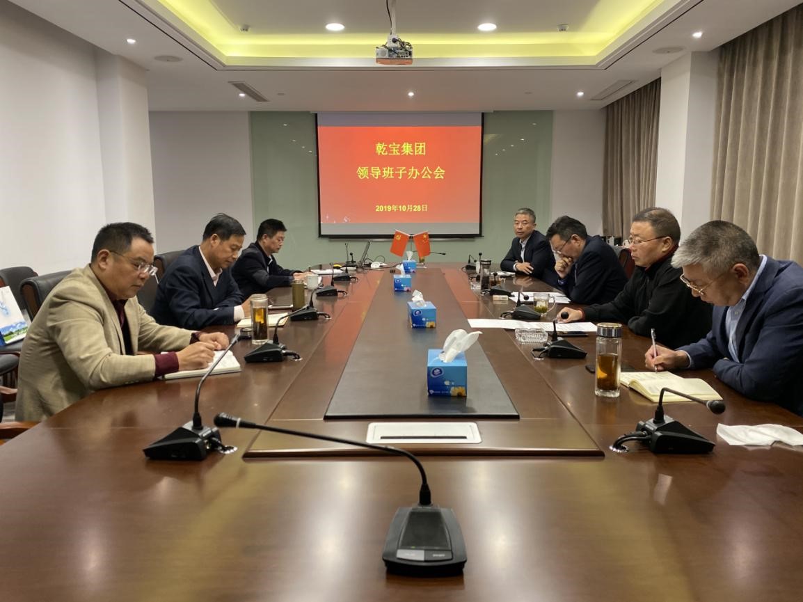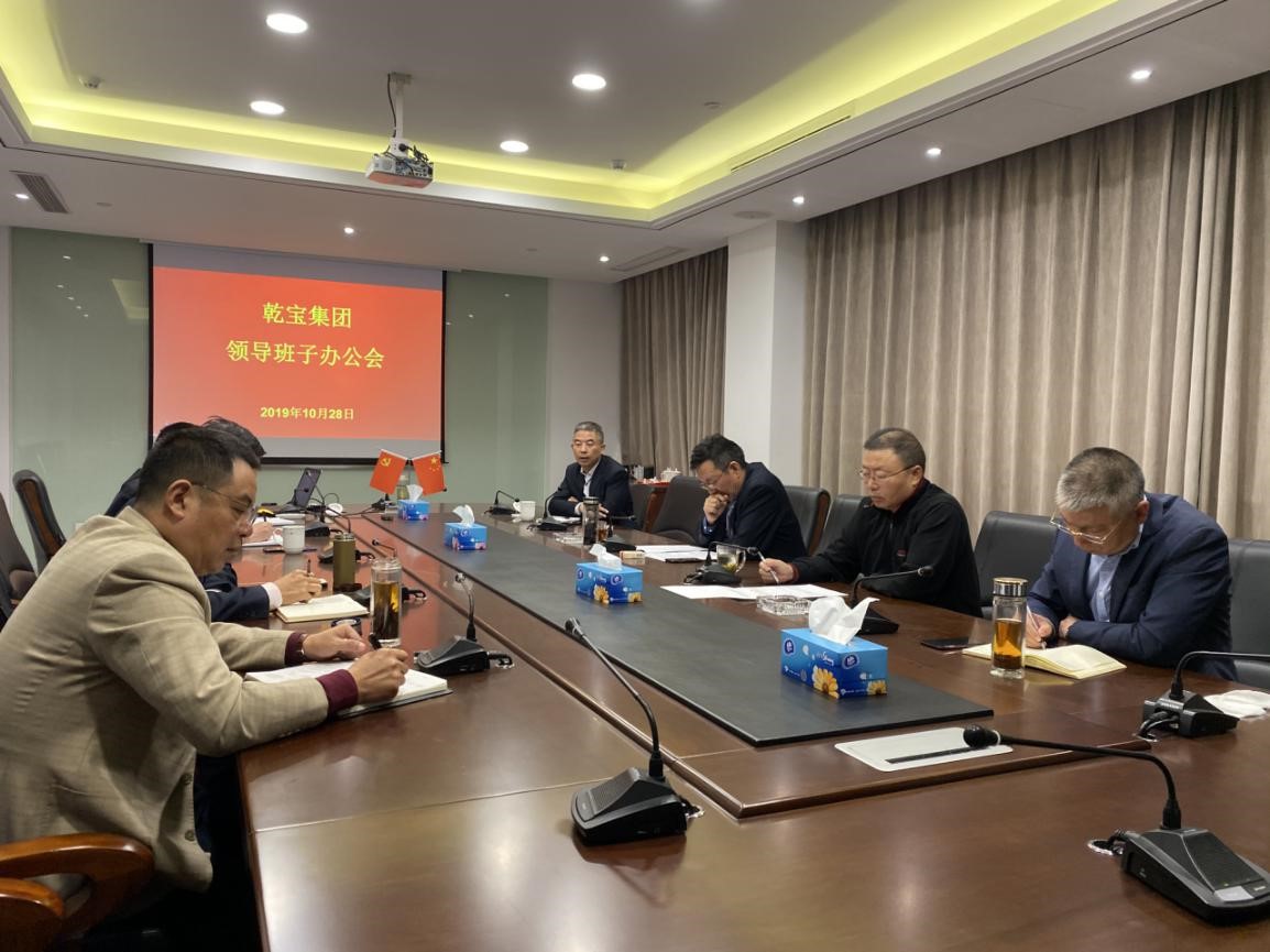 ? ? ? ?2019年10月28日,乾寶集團在總部召開領導班子辦公會。董事長王躍程、副董事長朱波、執行總裁王翼寧、副總裁許建華、副總裁孟憲考、天堂美公司總經理馬向農、乾寶生物科技公司總經理丘東、辦公室主任陳建飛參加會議。
