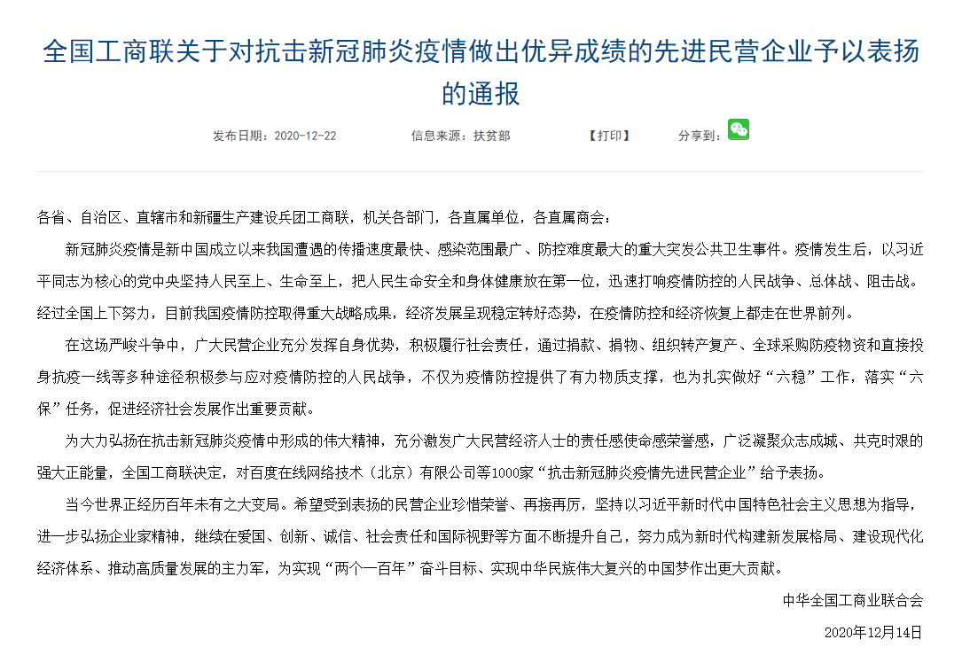 近期,中華全國工商業聯合會對抗擊新冠肺炎疫情做出優異成績的先進民營企業予以表揚,江蘇乾寶生物科技有限公司榮登榜單。