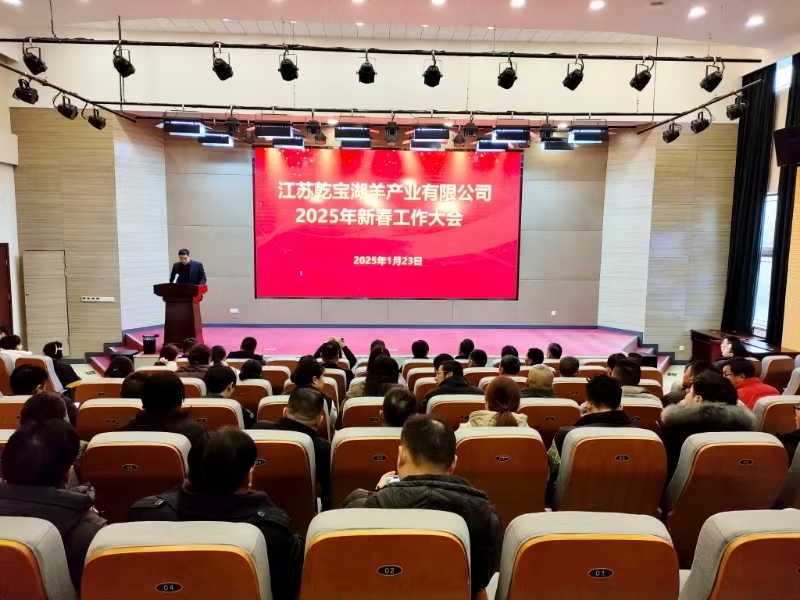 2025年1月23日下午,江蘇乾寶湖羊產業有限公司在報告廳隆重召開2025年新春工作大會,公司領導班子全體成員、全體員工參加了大會。