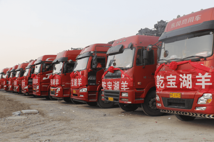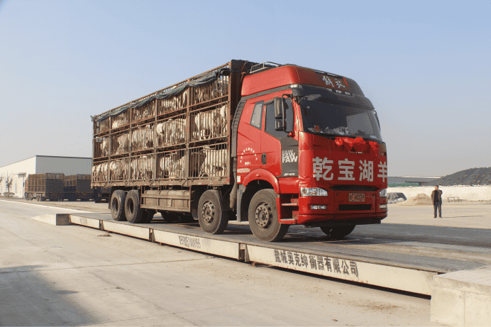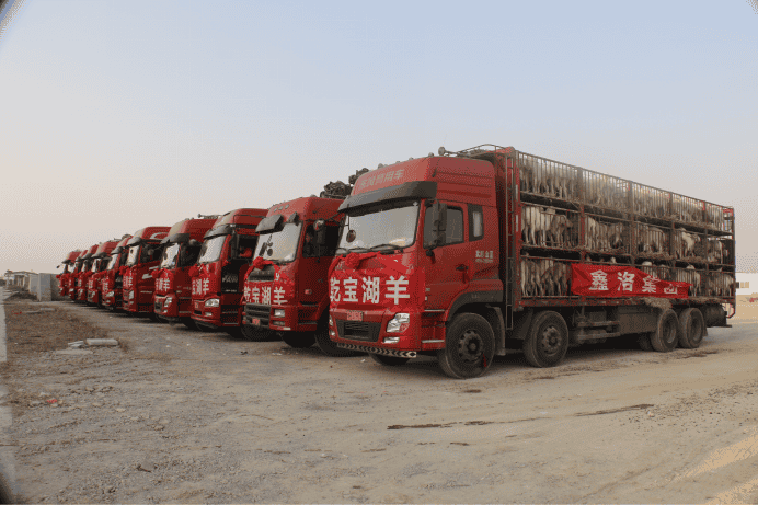 滿載湖羊的車隊排隊過磅